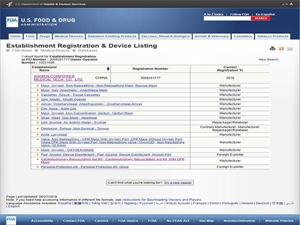 美國FDA證書